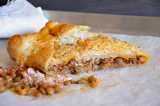 4 – Con del latte bagnate i bordi e chiudete la sfoglia come fosse uno strudel. Sempre con un filo di latte passate sopra la sfoglia e mettete dei semini, io avevo quelli di papavero. Bucherellate un pochino per creare dei caminetti.