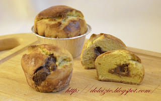 5 – Preparazione delle brioches. Prendete l’impasto e dividetelo in tante palline da 1 etto l’una (io le ho fatte così, ma potete anche dimezzare le dosi per farle più piccoline). All’interno di ogni pallina mettete 2 cubetti di cioccolato e richiudete bene. Adagiatele negli stampini imburrati ed infarinati e lasciatele riposare per altri 30 minuti. Spennellatele quindi con un uovo leggermente sbattuto e cucinate a 180° per 15/20 minuti.