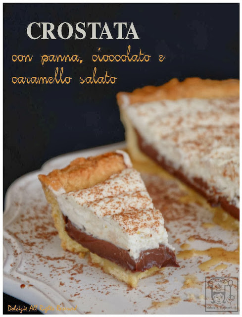 4 – Ora prepariamo il caramello. In un pentolino mettete lo zucchero a fuoco medio-basso. Cucinate per alcuni minuti o comunque fino a quando si trasforma in caramello. Una volta ottenuto il caramello, togliete il pentolino dal fuoco e facendo molta attenzione, aggiungetevi poco per volta la panna, quindi il burro e il sale sempre continuando a mescolare. Dovete ottenere una salsina cremosa che andrà versata nella crostata (all’interno). Vi raccomando di fare attenzione in questa operazione, non mettete le dita nel caramello appena fatto ma una volta raffreddato.. siete autorizzati a raccogliere ciò che resta nel pentolino.. una salsina che ricorda molto le caramelle “mou”… buonaaaaaaaaaaaaaa !!!